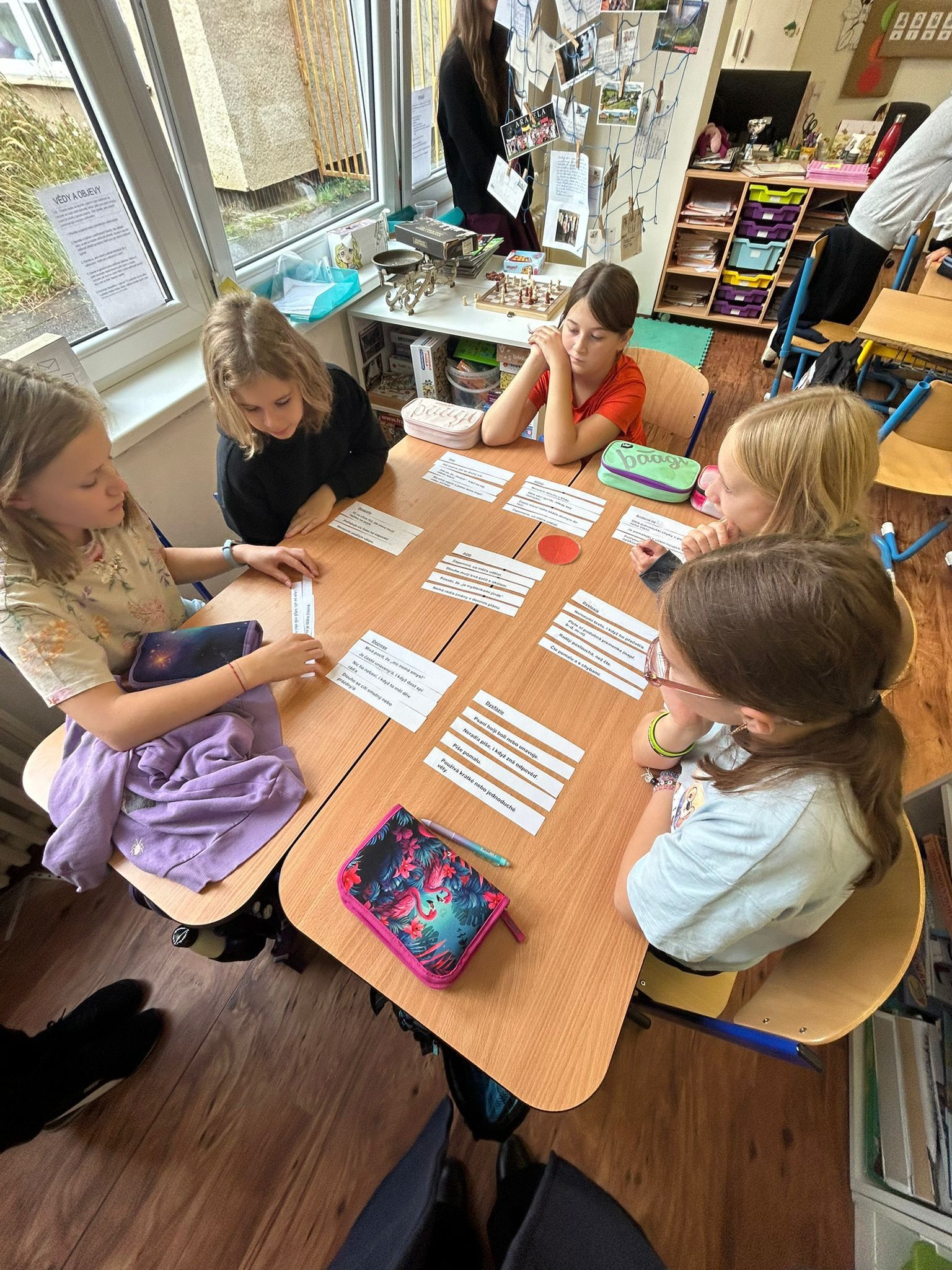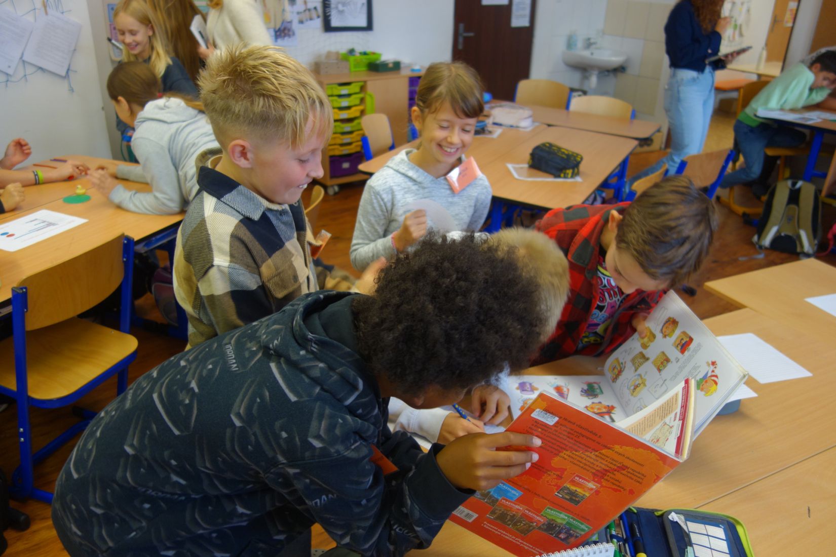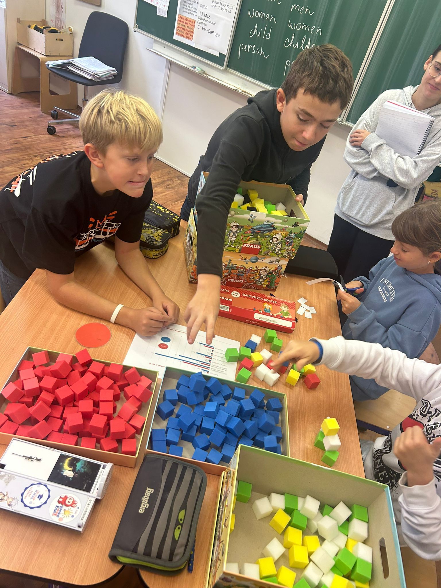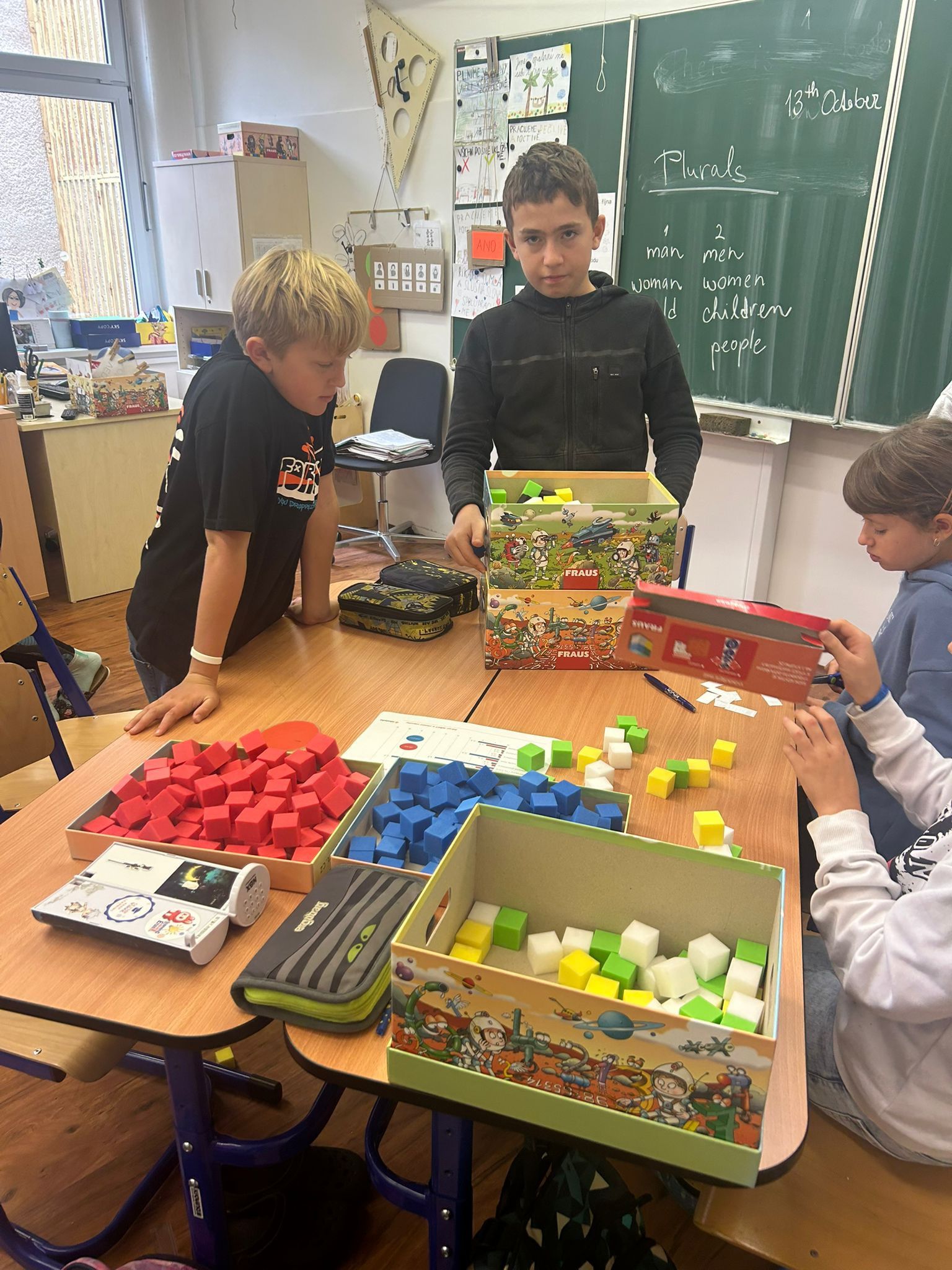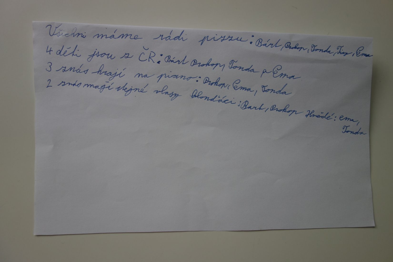 Ve vědách a objevech jsme prozkoumali nejrůznější poruchy učení a navrhovali, jak můžeme dětem s takovou poruchou pomáhat. V ateliéru jsme testovali, zda se dobře známe a pokusili jsme se nakreslit portrét někoho druhého. Ve psaní jsme zkoušeli psát diktát rušeni nejrůznějšími podněty, např. hlukem, dotykem, obrazem. Ve čtení jsme četli příběh o nemocné dívce a malovali místo, kde můžeme bezpečně stonat. V matematice jsme se seznamovali s typy škol. Převáděli jsme data z tabulek do různých typů grafů.