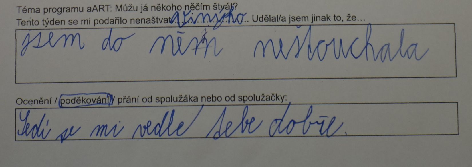 V páté třídě již můžeme dětem zadat, aby se ke své práci či ke svému chování vyjádřily písemně, v souvislých větách.