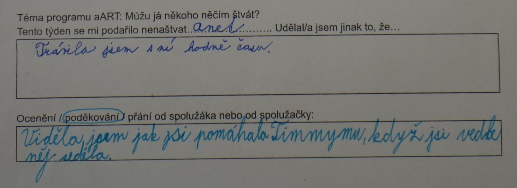A vrstevnické hodnocení? Zvolili jsme podobu ocenění, poděkování či přání. Považujeme za důležité všímat si svého okolí a pojmenovávat to příjemné, žádoucí, co se děje.