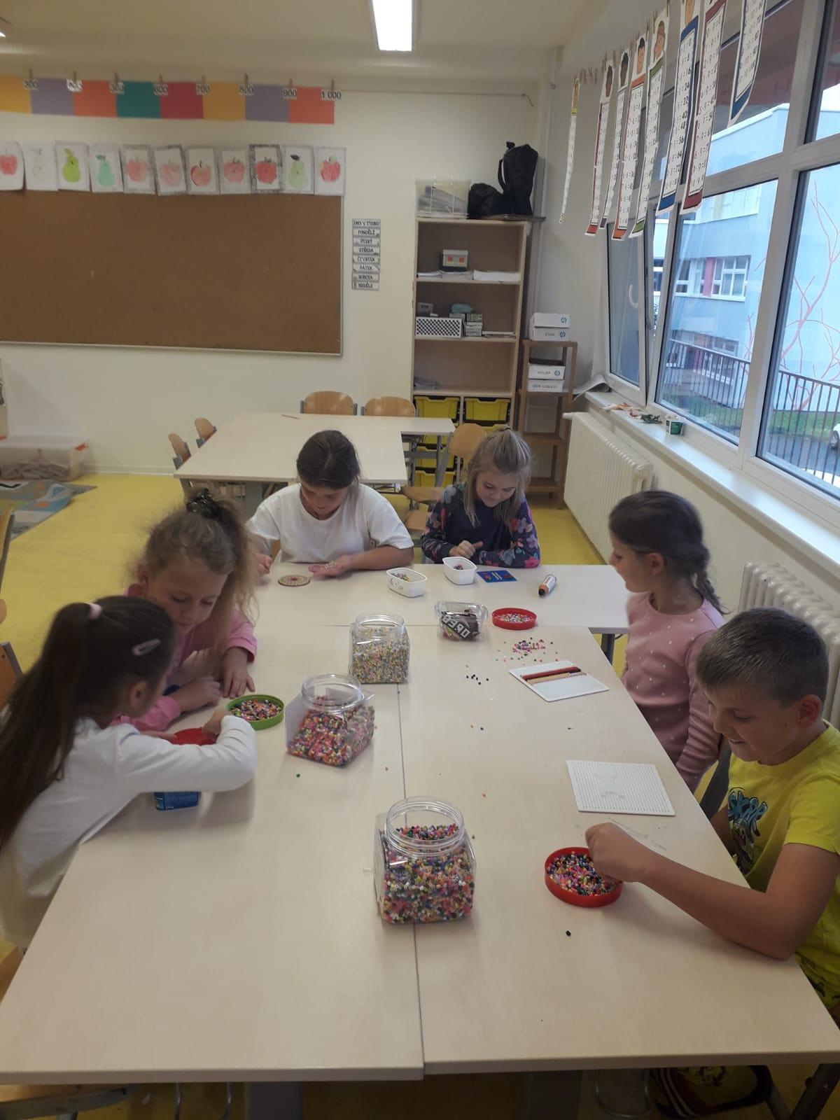 Děti se v družině nenudí. Například vyrábějí obrázky z nažehlovacích korálků, staví z kostek, hrají společenské hry... Všichni si užíváme spoustu zábavy. Fotky najdete zde.
