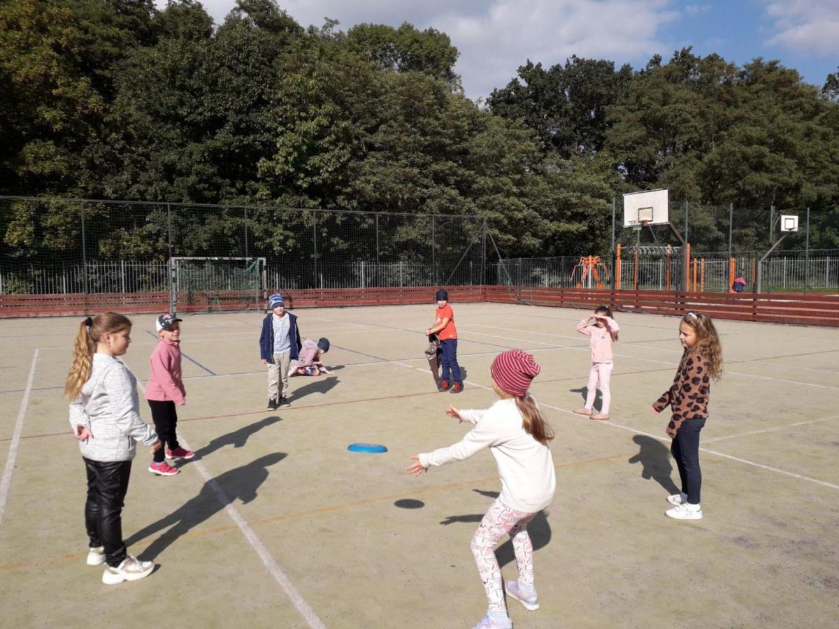 Využili jsme krásného počasí a ve dnech 30. září a 3. října jsme si společně zasportovali na hřišti. Děti si vyzkoušely hod na cíl, házení basketbalovým míčem na koš, podbíhání pod lanem, poměřily své síly při přetahování lana v týmech, vyzkoušely svou rovnováhu na postaveném chodníčku, dráhu s florbalkou a házely létajícím talířem. Sportování jsme si všichni užili. Fotky můžete vidět tady.